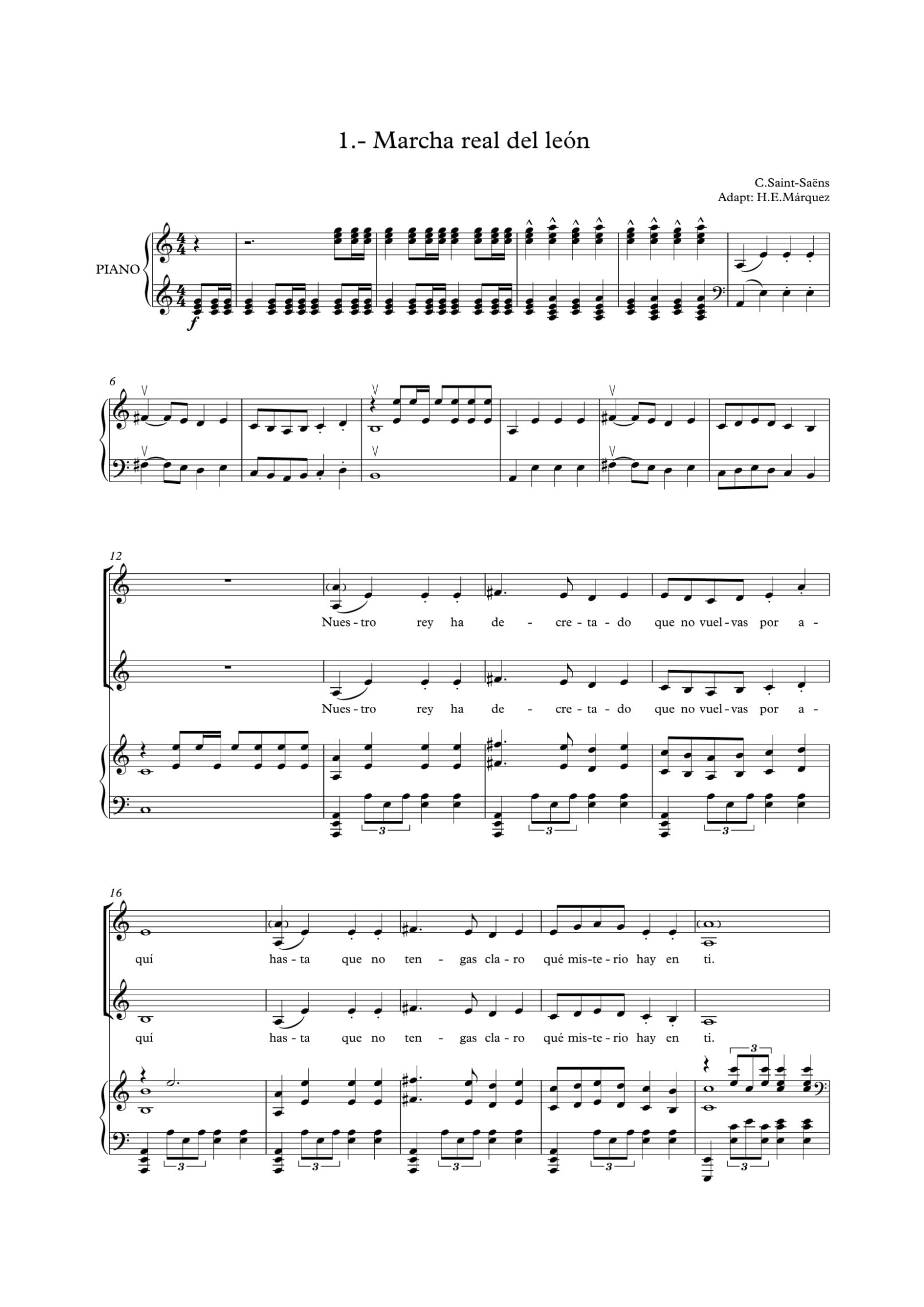 Esta obra no es más que la superposición al celebérrimo Carnaval de los Animales de C. Saint Saëns de un coro infantil que cuenta una particular versión de la historia del patito feo.